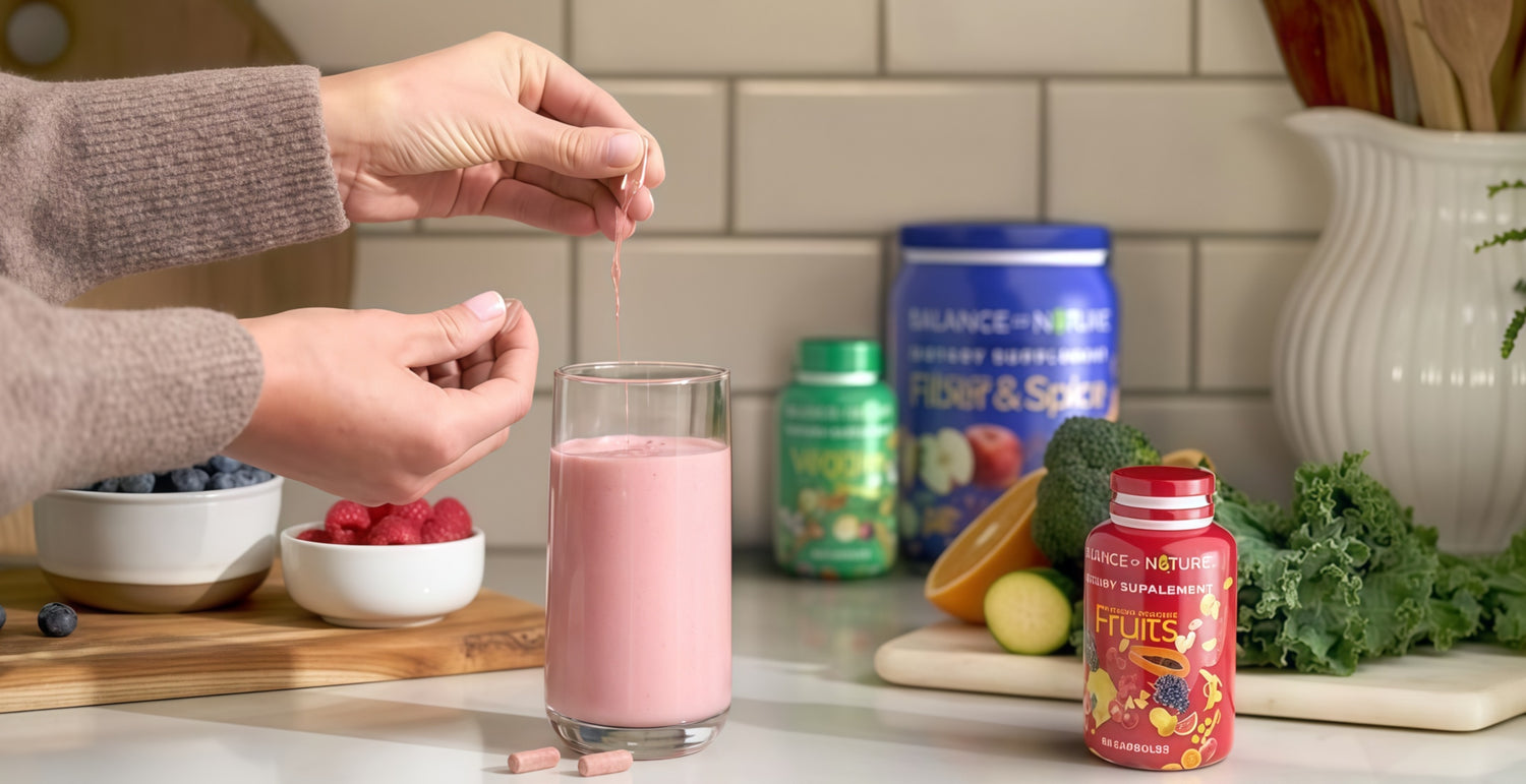 Balance of Nature supplements are ingredients of whole fruits, vegetables, spices, and fibers. They are gluten-free and contain no binders, fillers, or flow agents.